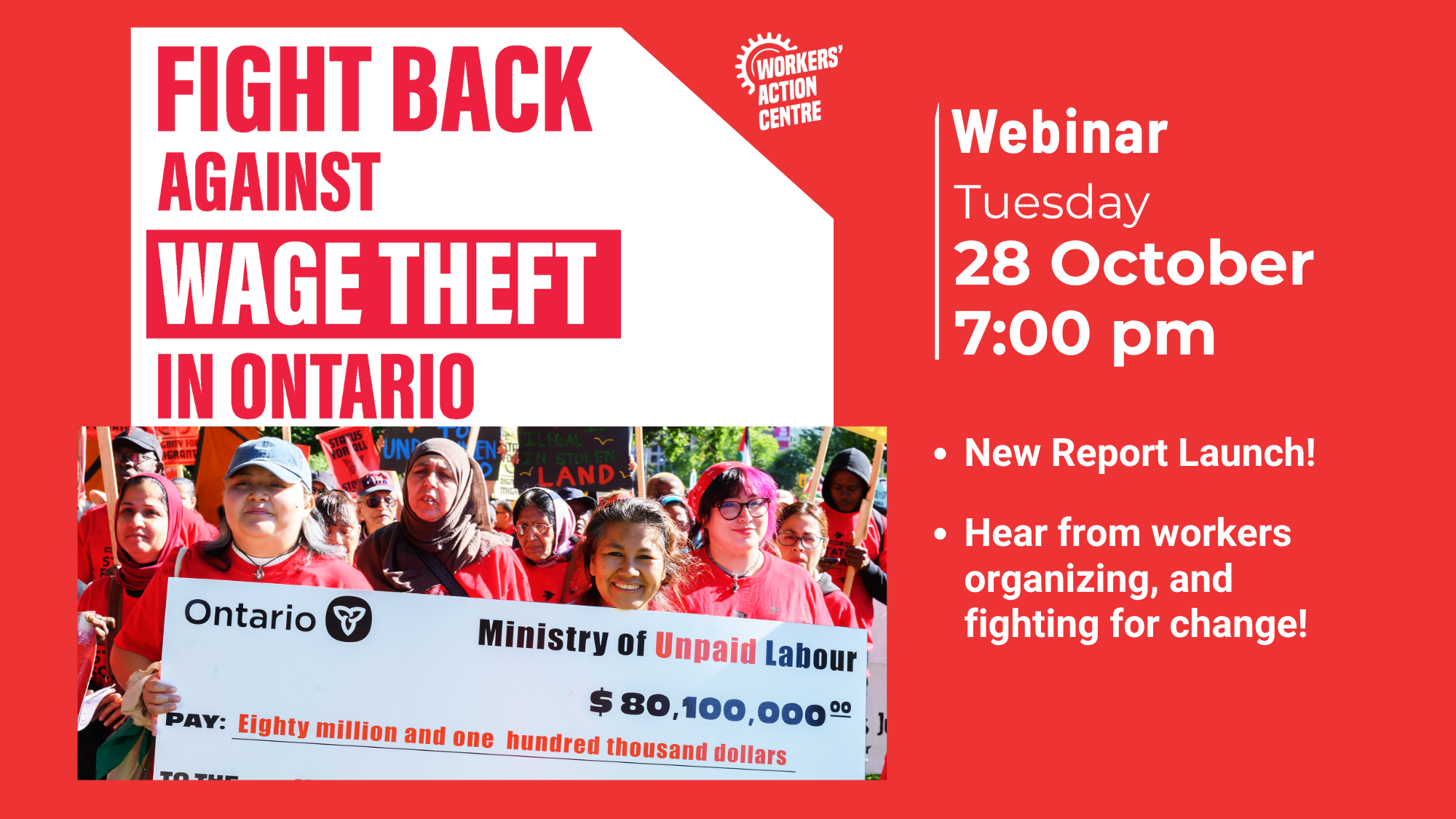 This is why we are joining the Workers' Action Centre tomorrow for the the Stop Wage Theft report and campaign launch. Together, we will hear from workers who have experienced wage theft and strategize with them on what needs to be done to fight back.
